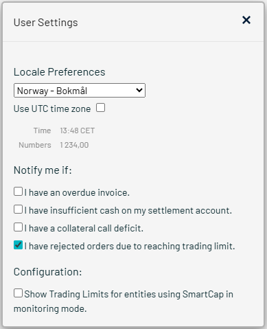 - if you select Norway as your Locale preference, the Clearing system will show a comma (,) as your decimal separator.